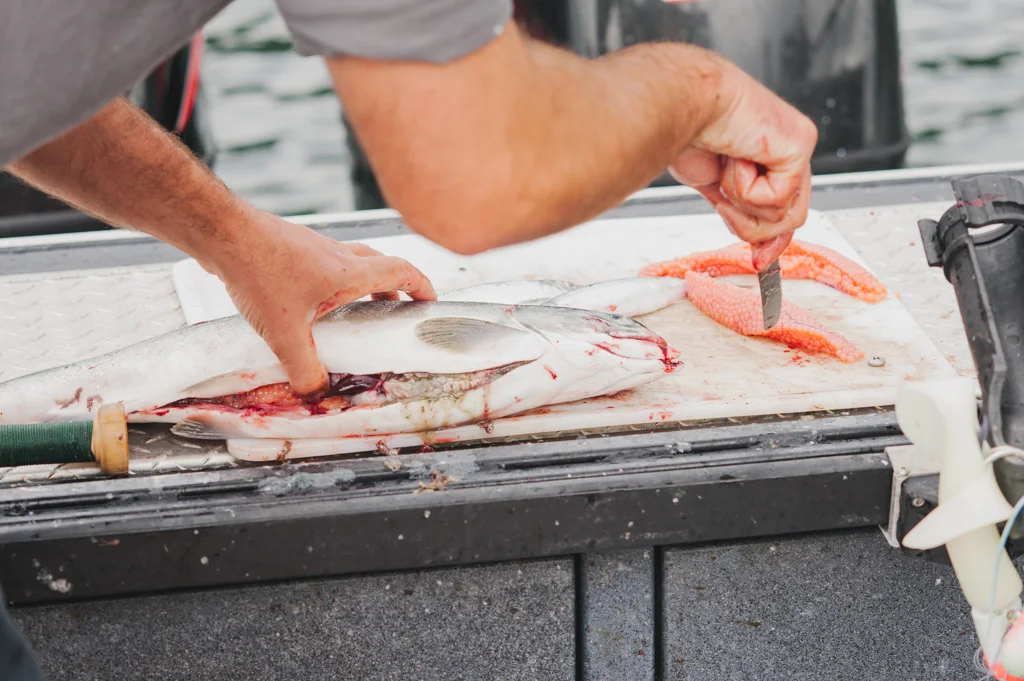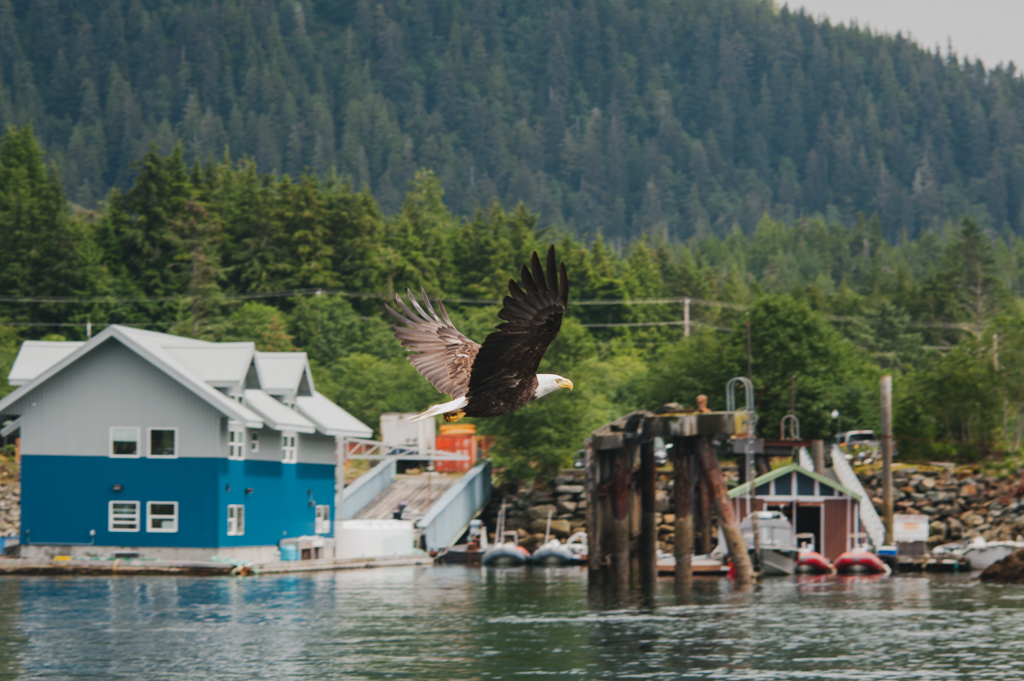 As we were headed back, Ryan spotted some bald eagles and said "Watch this. And get your camera ready." He gutted a salmon and began to whistle.